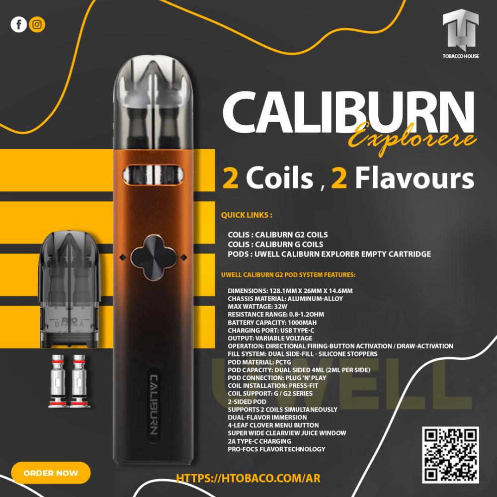 جهاز Caliburn Explorer هو ابتكار مميز من عالم السجائر الإلكترونية، يجمع بين الأداء العالي والتصميم الأنيق. يتميز بقدرته على تشغيل كويلين في وقت واحد لتجربة نكهات مزدوجة وفريدة، مما يمنحك تنوعًا لا مثيل له في كل سحبة. مصنوع من خامات عالية الجودة مع هيكل من الألومنيوم المتين، ويأتي بسعة بطارية 1000mAh لضمان استخدام طويل. متوفر حصريًا في متجر توباكو هاوس بأسعار تنافسية.